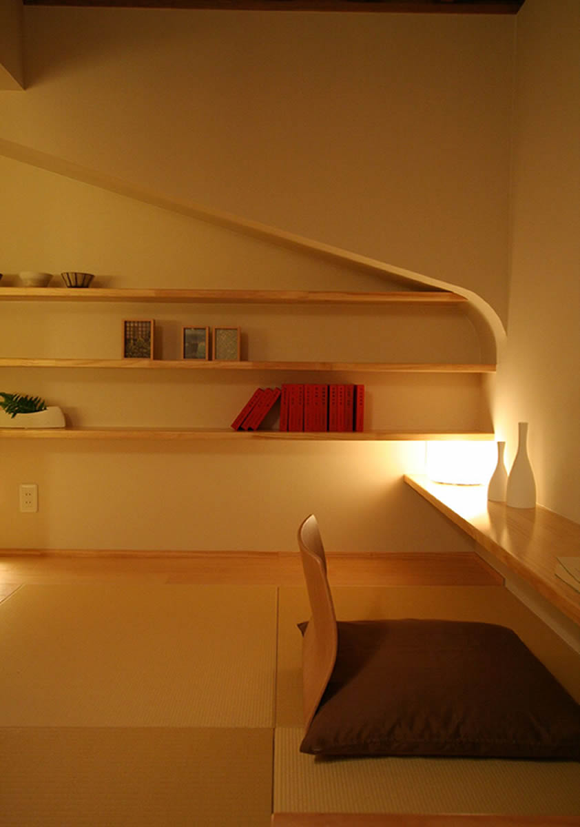 和の“しつらえ”が清々しいよ 自然素材を活かした和の空間、「しつらえ」を現代的な感性とニーズから表現しています。 親しみやすさ、やすらぎの時間をテーマに、3ヵ所の吹抜けが場を区切りながらも穏やかに繋がって、いつもそこに家族の気配が感じられるようにデザインされています。
